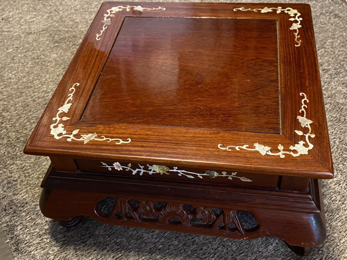 - 高級感あふれる・・・花台・唐木・螺鈿細工・34X34X高さ17センチ