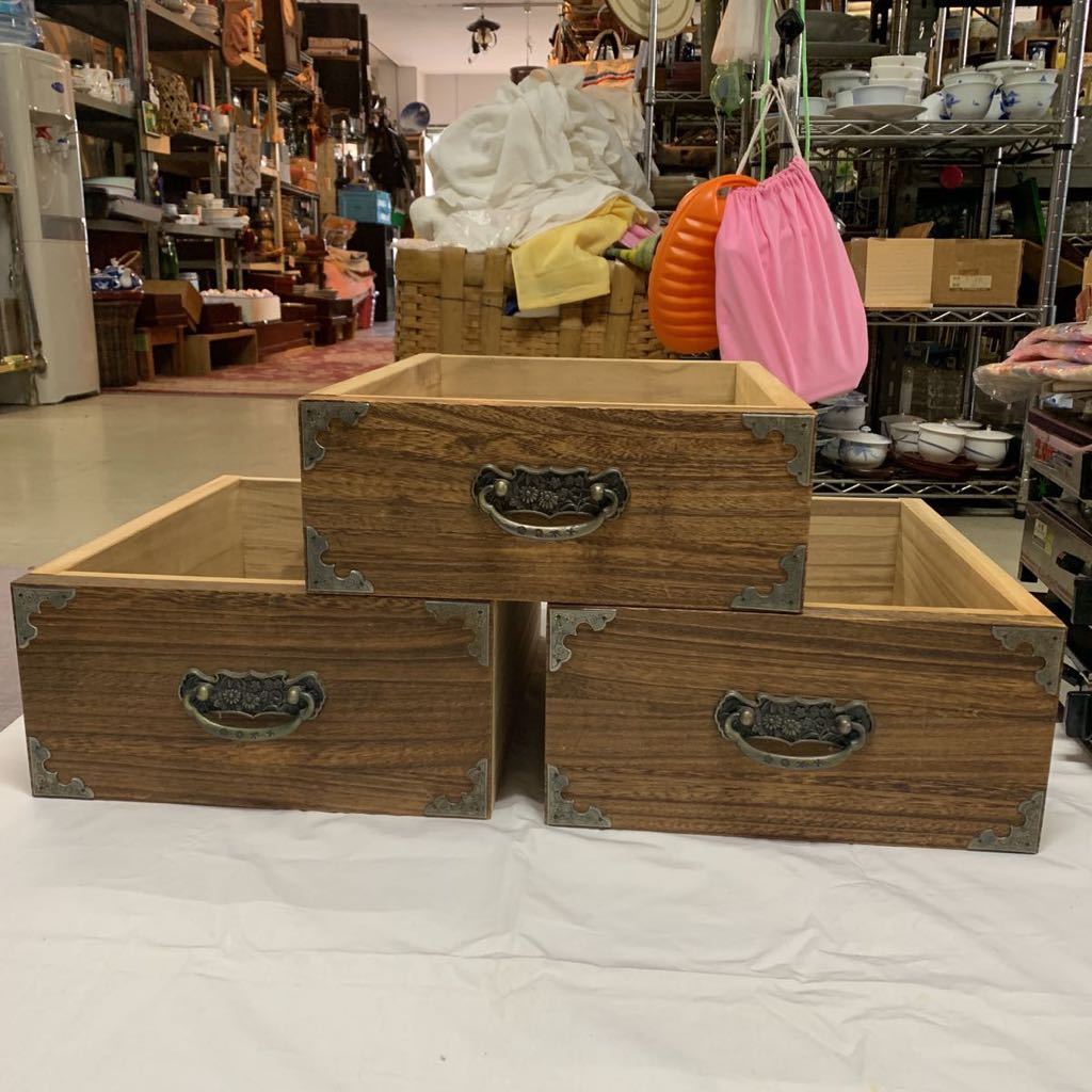 - 全面桐 引き出し 和家具 木製 収納箱 小物入れ 計3点