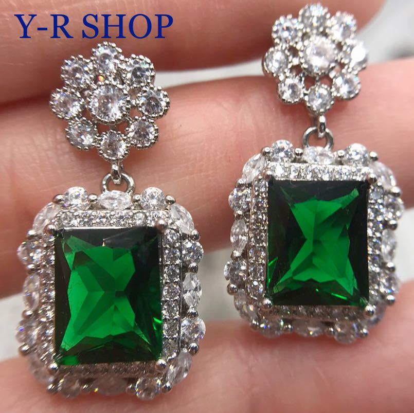 - エメラルド とホワイトトパーズのお花デザインピアス★レディースシルバーアクセサリーカラーストーン キュービックジルコニア 新品宝石Y-R