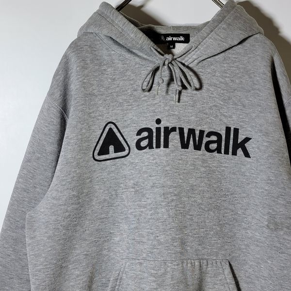- air walk エアウォーク メンズ ロゴプリント 裏起毛 プルパーカー ダークグレー M
