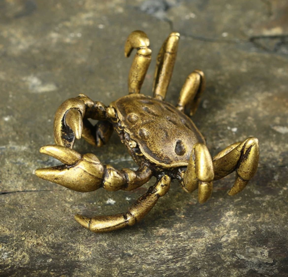 - 真鍮のカニ 蟹 カニ クラブ ハサミ インテリア アンティーク 置物 小物 装飾 ミニチュア 銅 雑貨 1966