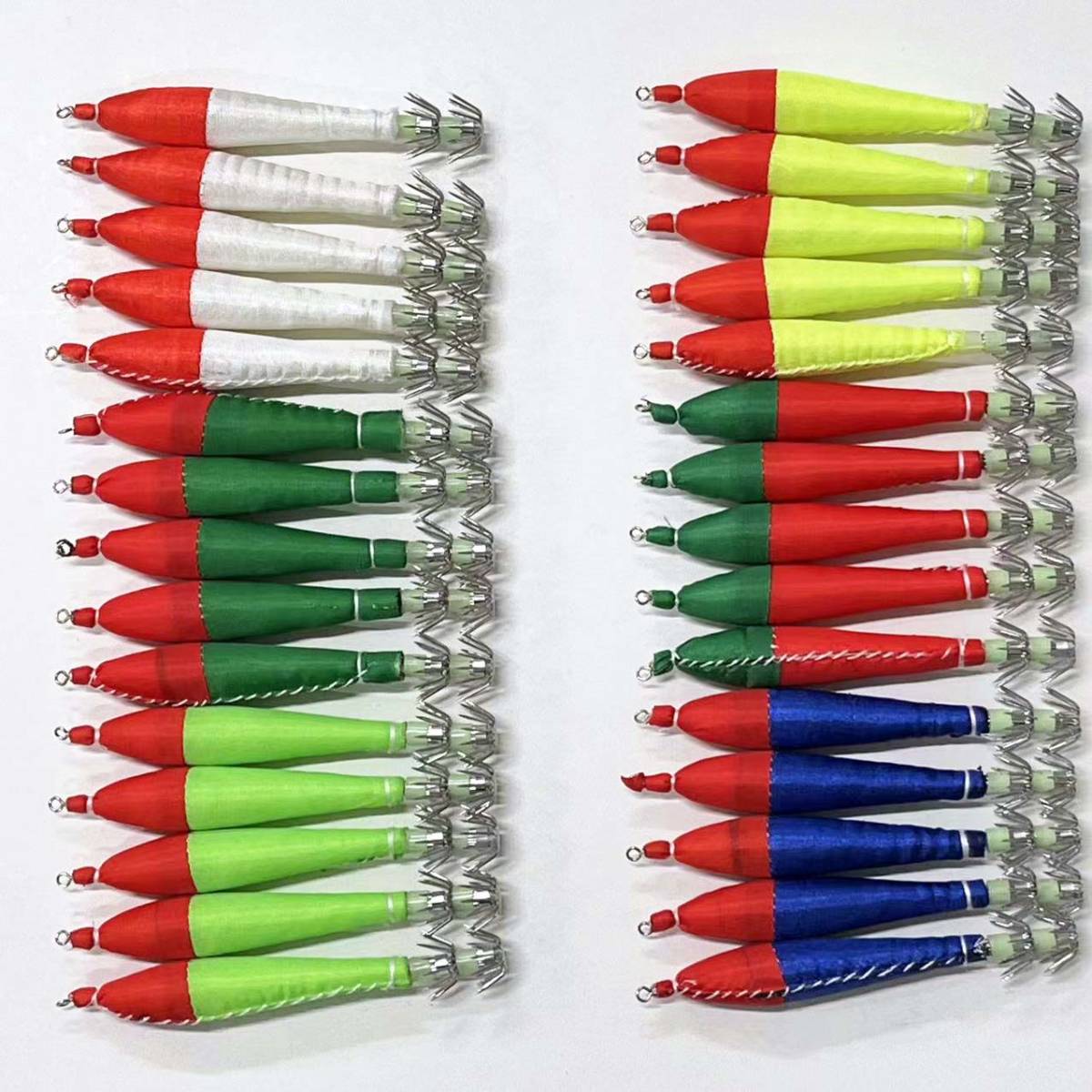 - 夜光 4号 浮きスッテ 6色 30本 赤/白 赤/緑 赤/黄色 緑/赤 赤/青 赤/黄緑 イカ釣り セット 訳有 新品未使用品 wkst40h30d-2