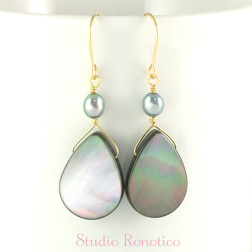 > [ロノティコ]Ronotico silver925 14kgf 黒蝶貝 ブラックシェル ペアシェイプ ピアス pi-180