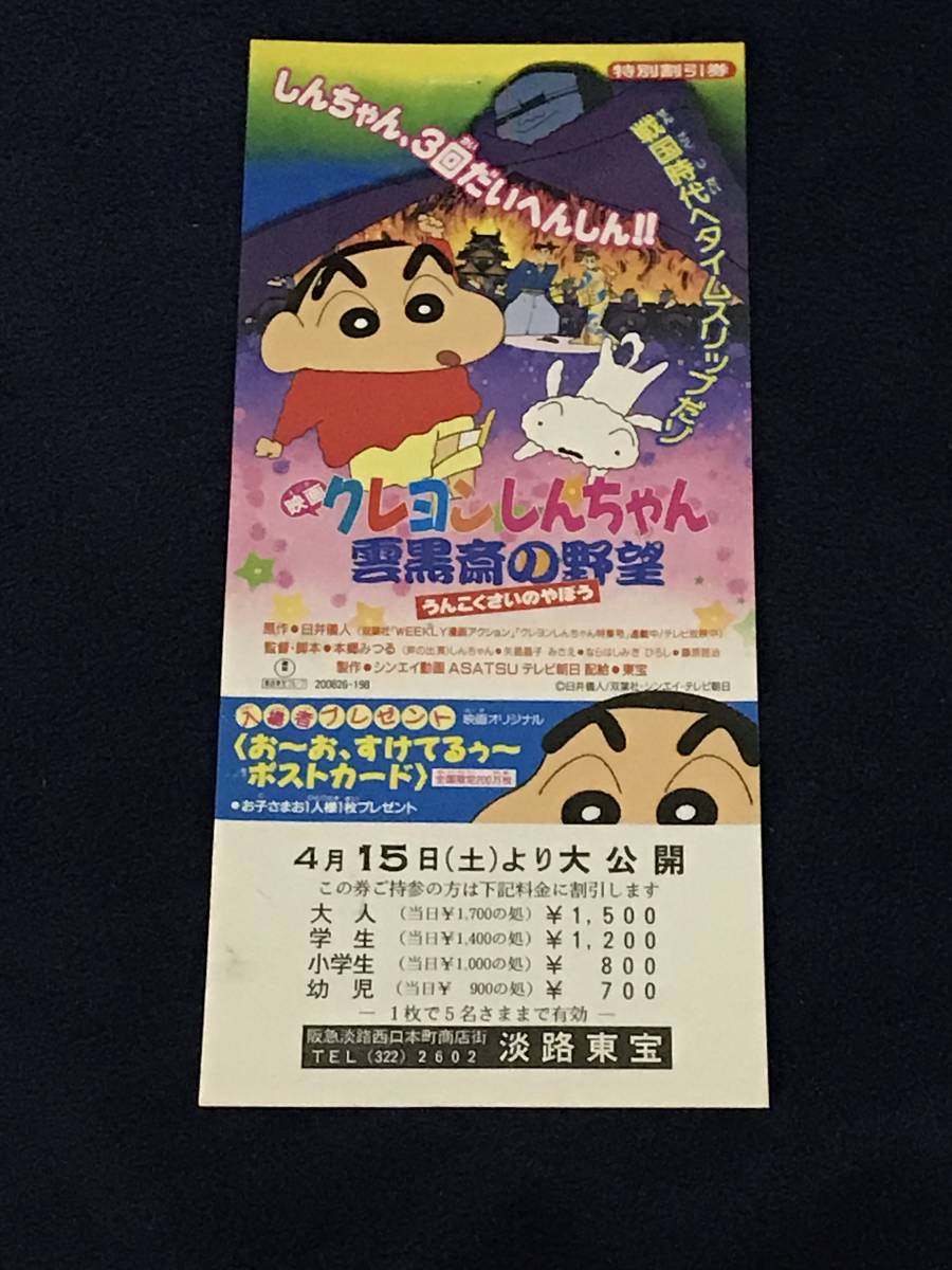 - 【当時物】映画割引券 クレヨンしんちゃん 雲黒斎の野望 割引券