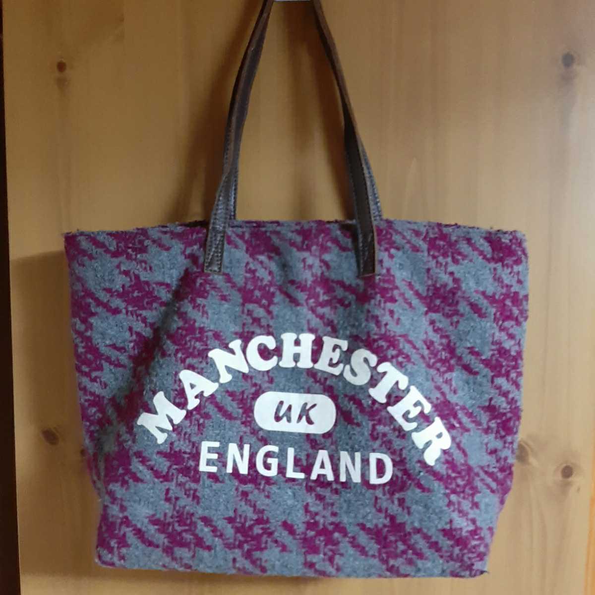 - *COO*グレーにパープルの千鳥格子にロゴプリント入りのトートバッグ*