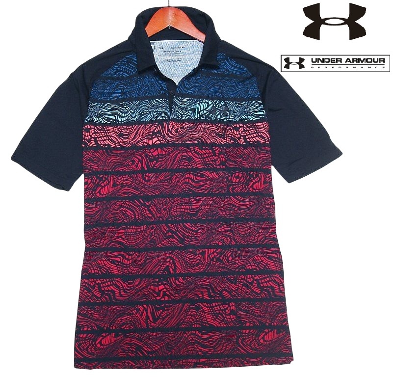 - 新品!! アンダーアーマー UA アイソチル 半袖 ポロシャツ ブラック LG (L) 送料安☆UNDER ARMOUR ゴルフ サイコストライプ 吸水速乾 黒系★