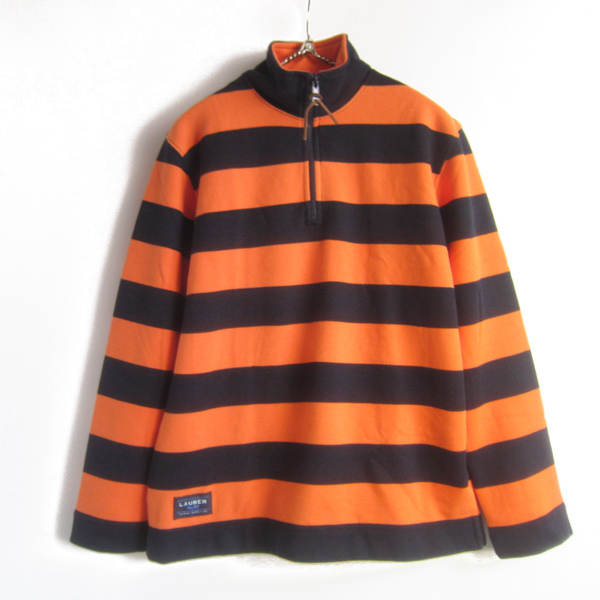 - 新品 LAUREN ラルフローレン RL 67 ジップアップ ボーダー ラガーシャツ 濃紺×オレンジ系 デッドストック D135-11-0001XVW