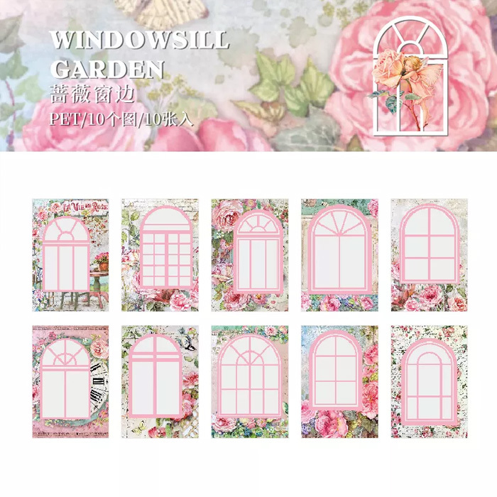 - 10枚 シール 窓 扉 透明 おしゃれ アンティーク ビンテージ デコステッカー アンティーク調 コラージュ レトロ 1059-1