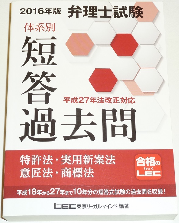 - ◆早い者勝ち即決◆弁理士試験◆体系別短答過去問◆入手困難な年代の連続10年分◆特許法◆実用新案法◆意匠法◆商標法◆合格のLEC◆◆◆