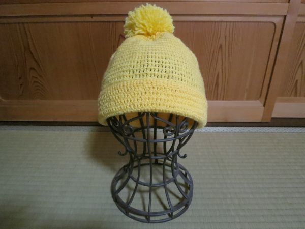 - 帽子 ニット 毛糸 手編み 黄色 イエロー ハンドメイド