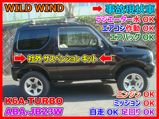 > ジムニーJB23価格相談可能★ジムニー ABA-JB23W K6A 車体一式+部品一式+書類一式 ワイルドウインド リフトアップ社外サスキット 事故現状車
