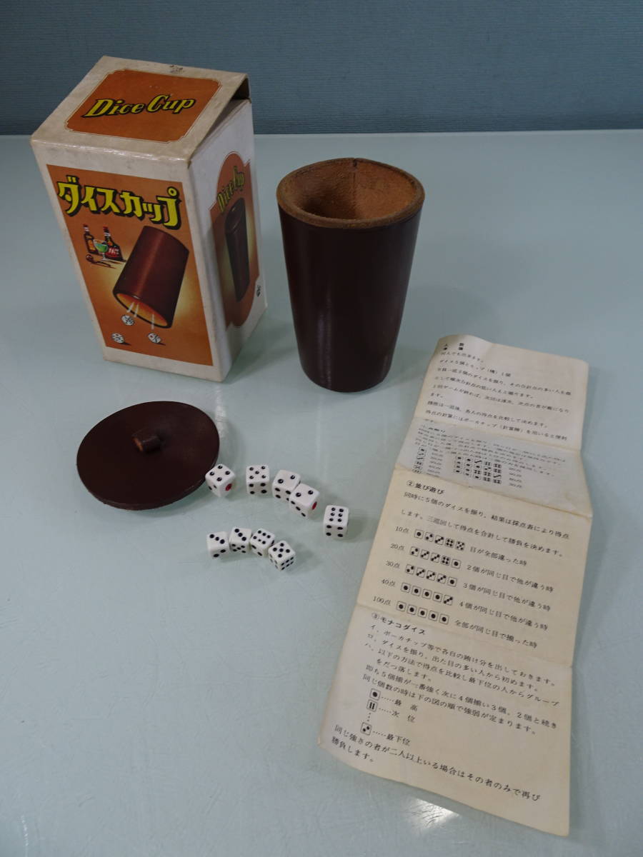 - ダイスカップ/DiceCup 本革 昭和レトロ アンティーク サイコロ大小付き 中古