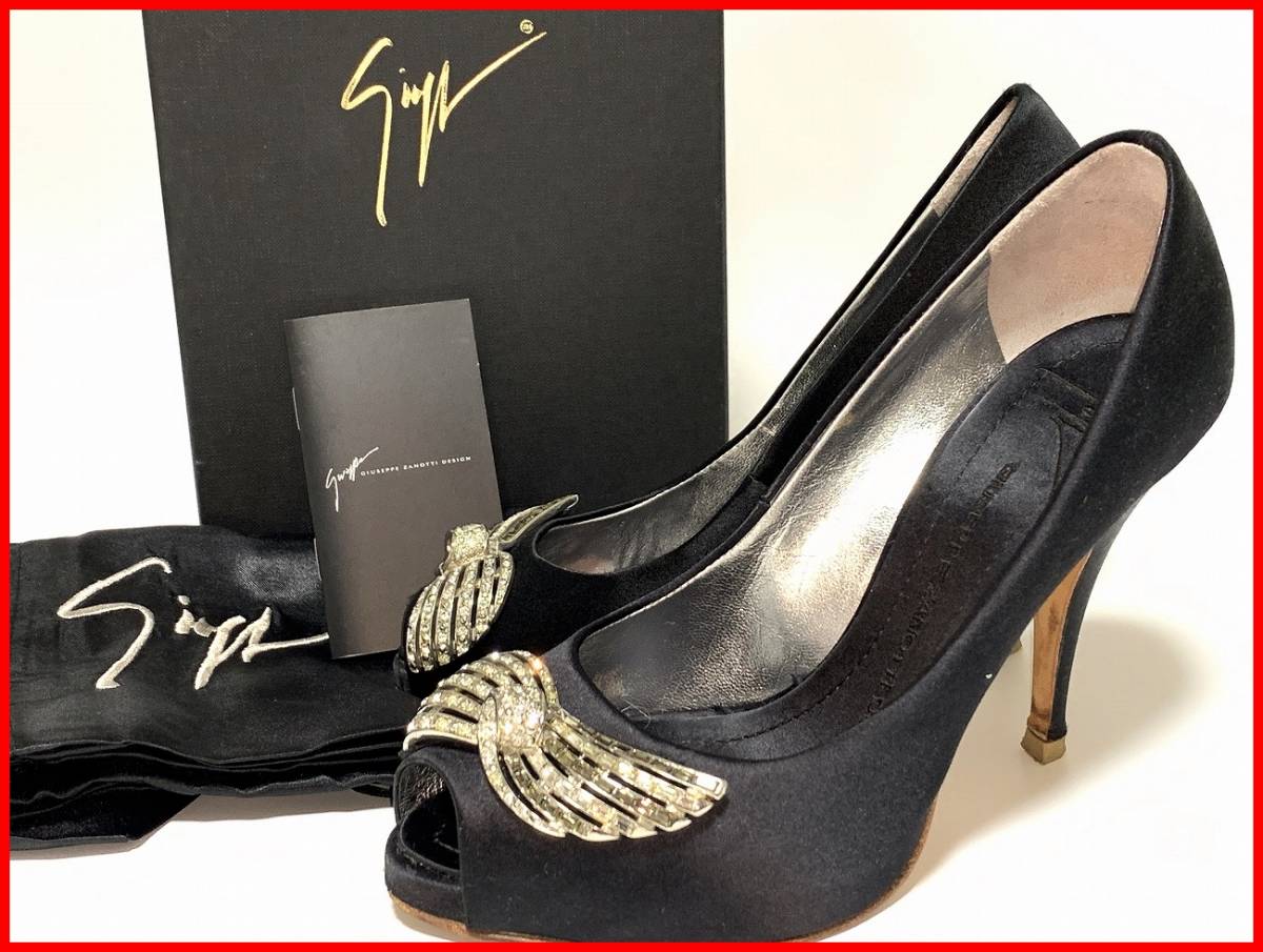 > 即決 GIOSEPPE ZANOTTI DESIGN ジュゼッペ・ザノッティ 35.5≒22.5cm パンプス 黒 ベロア レディース F