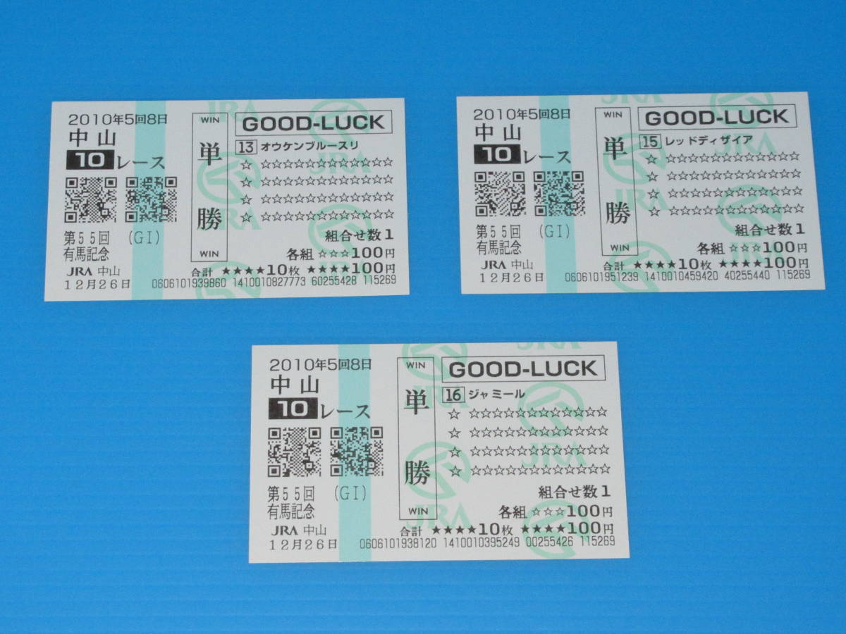 - 匿名送料無料 懐かしの単勝馬券(QP)★オウケンブルースリ レッドディザイア他3枚セット 第55回 有馬記念GⅠ 2011.12.26 即決!中山競馬場