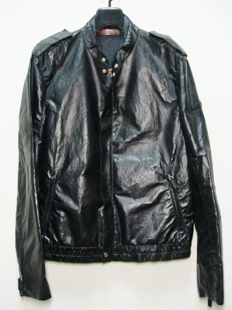 - PRADA プラダ ◇ Art SYV300 薄手 皮 革 レザー ナイロン 切替 エポーレット シングル ライダース ジャケット ブルゾン