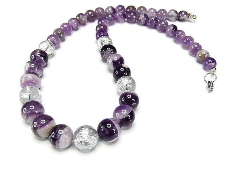 - 水晶銀龍手彫り約12mmファントムアメジスト天然石ワイヤ仕上げネックレスプライム