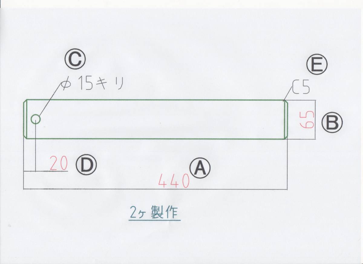 - NO 1393 Φ65用 全長440mm バケットピン 2本 1セット