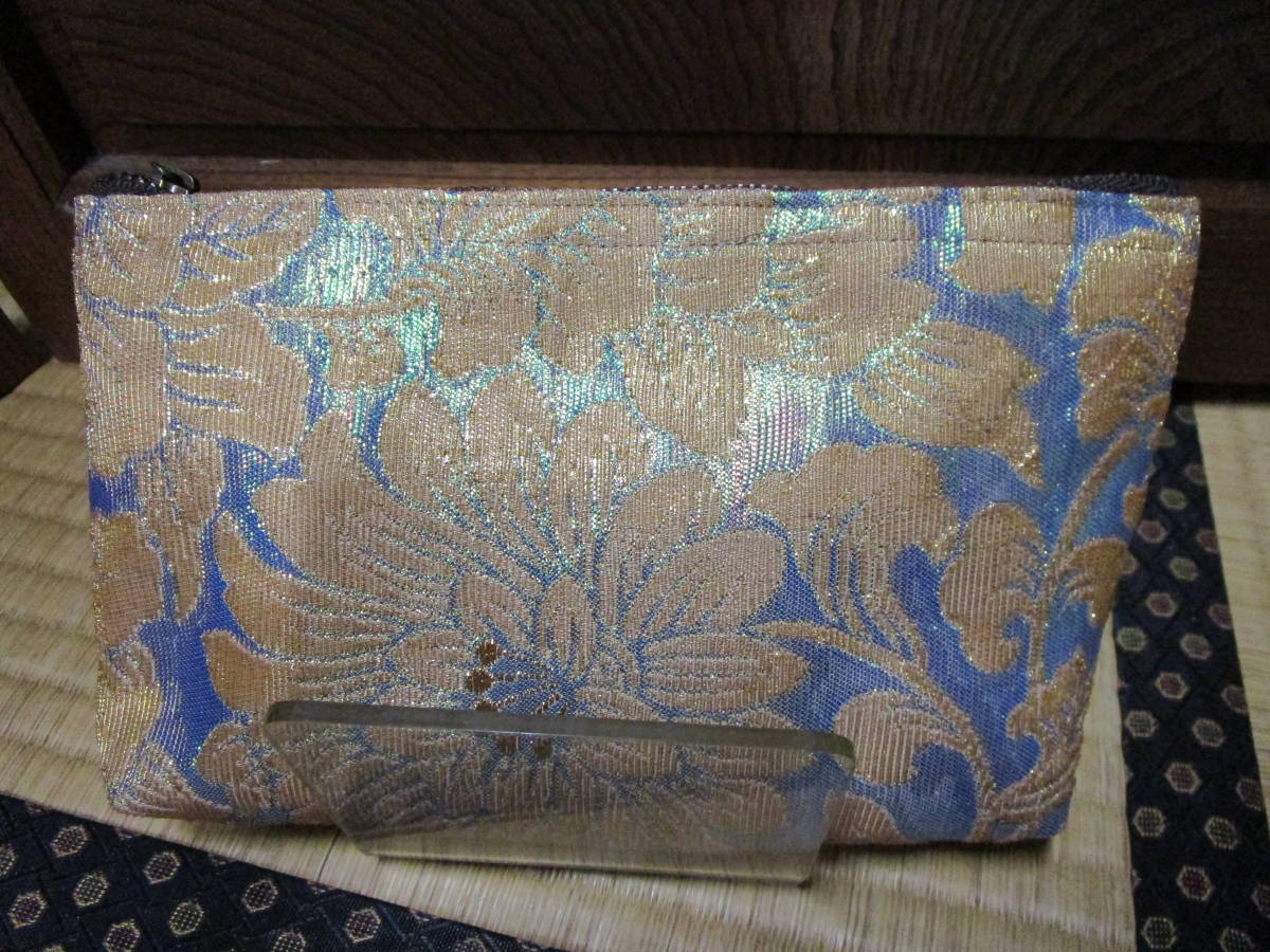 - 新品 正絹京都西陣織 おしゃれポーチ【5】高級感あふれる金箔唐花柄 ハンドメイド ファスナー付き小物入れ お化粧ポーチ オリジナル品