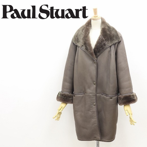 - ◆Paul Stuart ポール スチュアート 羊革 ラムレザー ムートン パイピング コート グレージュ