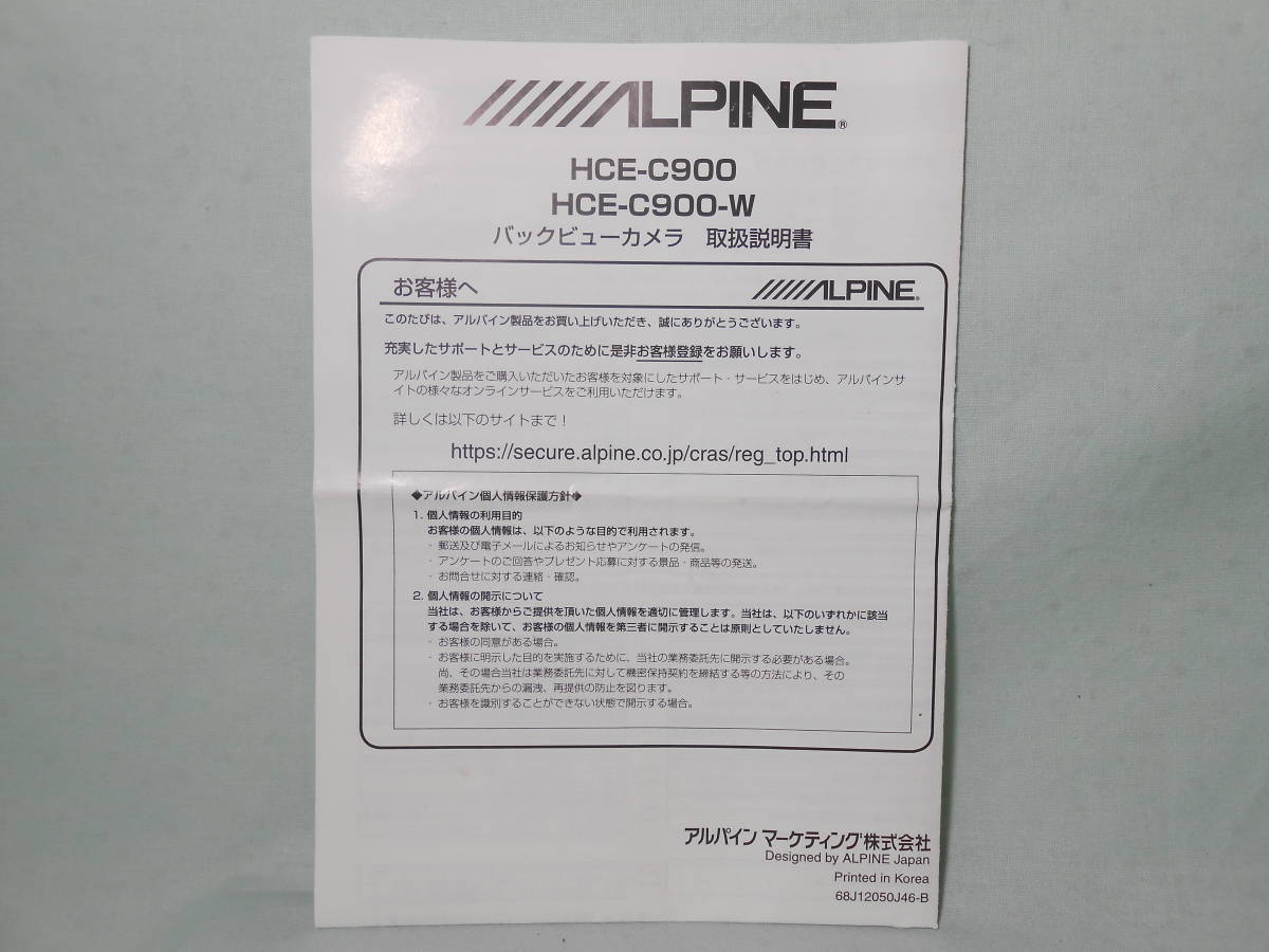 - G-544 ☆ アルパイン 取扱説明書 ☆ ALPINE バックビューカメラ HCE-C900/HCE-C900-W 中古【送料¥210~】