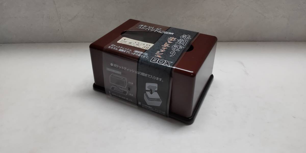 - 「ポケットティッシュケース・漆調塗りBOX・茶色系」日本製・ABS樹脂・ウレタン塗装・未使用【送料無料】「おかあさんのお針箱」00200365