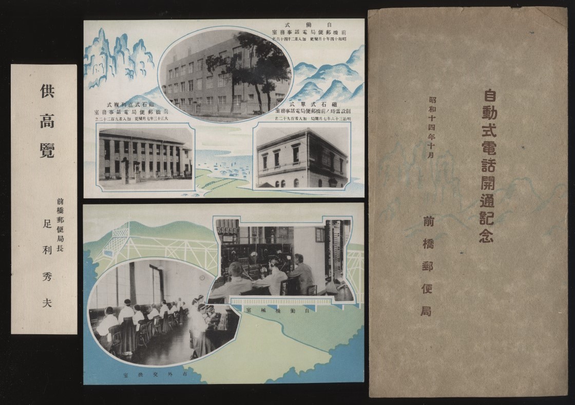 - 絵葉書 自動式電話開通記念 前橋郵便局 2枚 昭和14年 局長通信箋付 検:群馬県電信電話歴史 前橋郵便局電話分室 自動機械室 市外交換室 NTT
