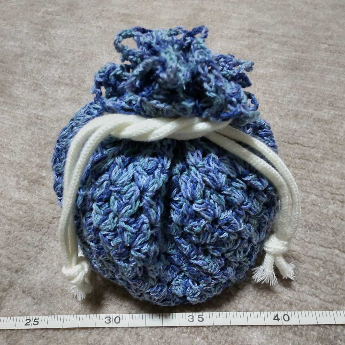 - 新品 ハンドメイド 巾着ポーチ 巾着 バッグ ポーチ トートバッグ ミニバッグ バッグインバッグ お買い物バッグ 手編み ブルー 青 水色 紫
