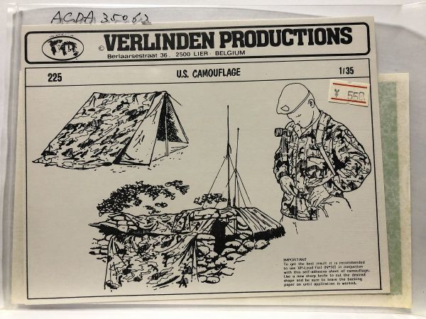 - VERLINDEN/バーリンデン 1/35 U.S.CAMOUFLAGE カモフラージュ 迷彩 テント 服 デカール シート 225 PM04