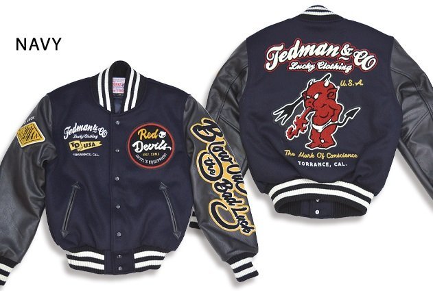> スタジアムジャケット◆TEDMAN/テッドマン ネイビーXXLサイズ(サイズ46)TDJ-23000 スタジャン アワードジャケット エフ商会 本革 メルト