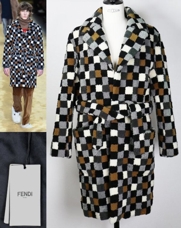 - 16AW 定価213万 FENDI フェンディ パッチワーク ムートン ベルト コート 48 multi color shearing coat b6264