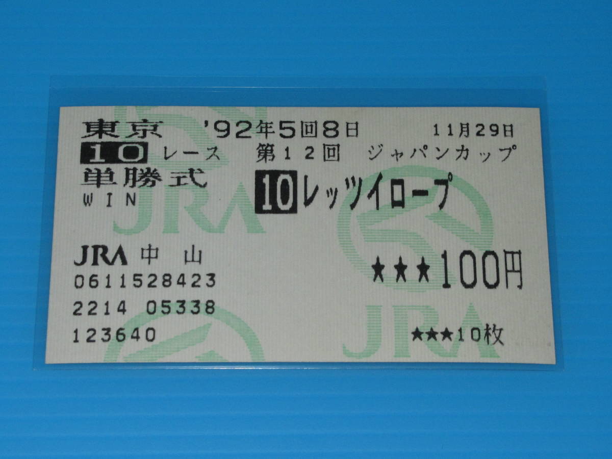- 匿名送料無料 懐かしの単勝馬券 ★レッツイロープ 第12回 ジャパンカップ GⅠ 1992.11.29 田原成貴 即決!競馬 ウマ娘 トウカイテイオー
