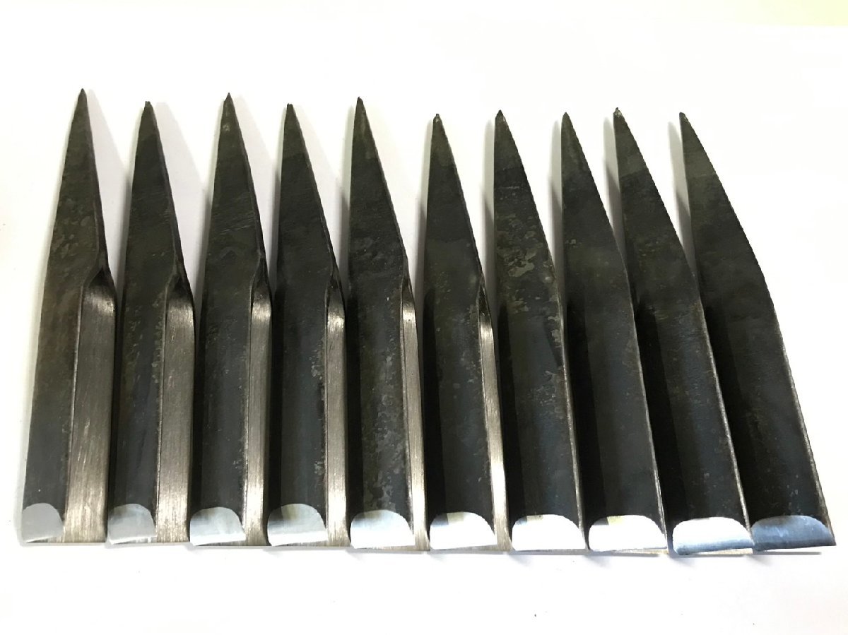 - ■送料無料■ 未使用 長期保管品 仙洞 在銘 三角刀 彫刻刀 のみ 鑿 刃 10本セット 19mm 全長125~129mm i7/SR19