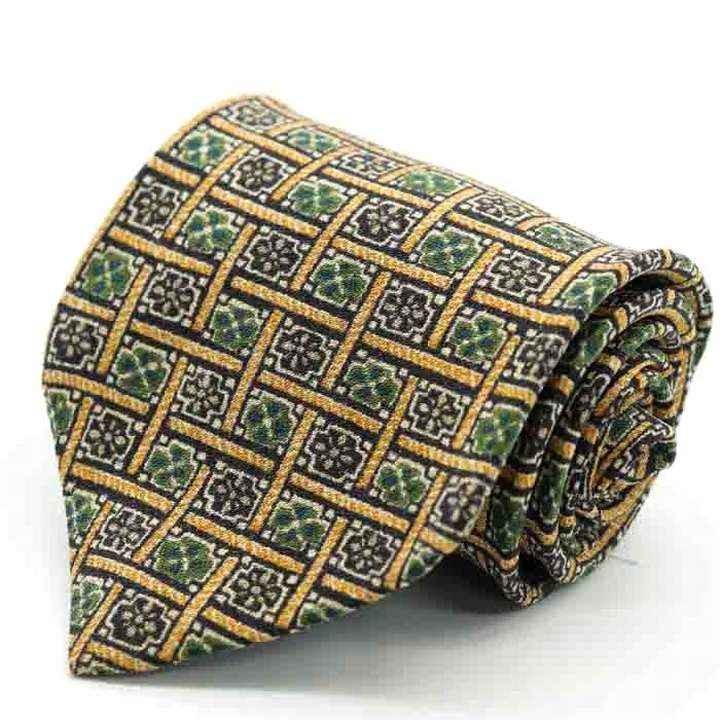 - ウンガロ 総柄 高級 ブランド ネクタイ メンズ カーキ 良品