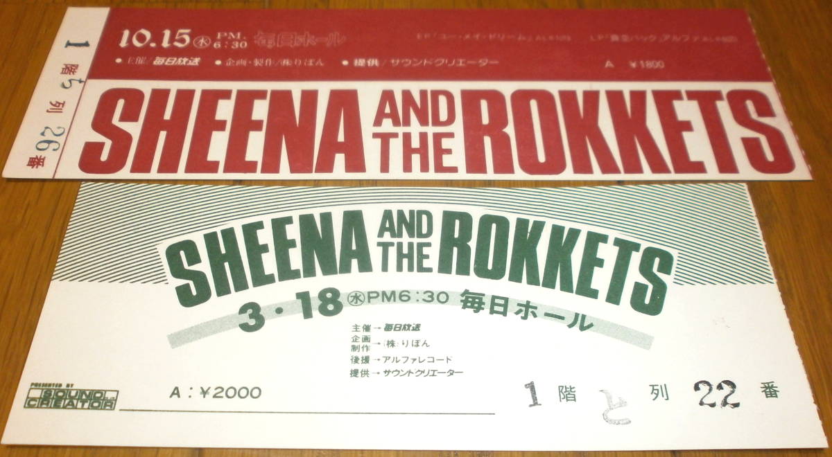 > シーナ・アンド・ザ・ロケッツ SHEENA AND THE ROKKETS 80年と81年のツアー2公演分 チケット2枚半券 当時物 レア RARE 鮎川 誠