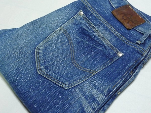 - 美品Leeリー×別注RawFudgeローファッジ[FlareBootCut]綿麻デニムブーツカットMブルーUsed加工日本製