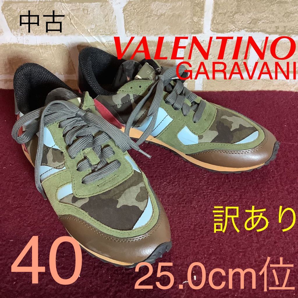 - 【売り切り!送料無料!】A-281 VALENTINO garavani!スニーカー!迷彩!グリーン!40 25.0cm位!訳あり!中古!