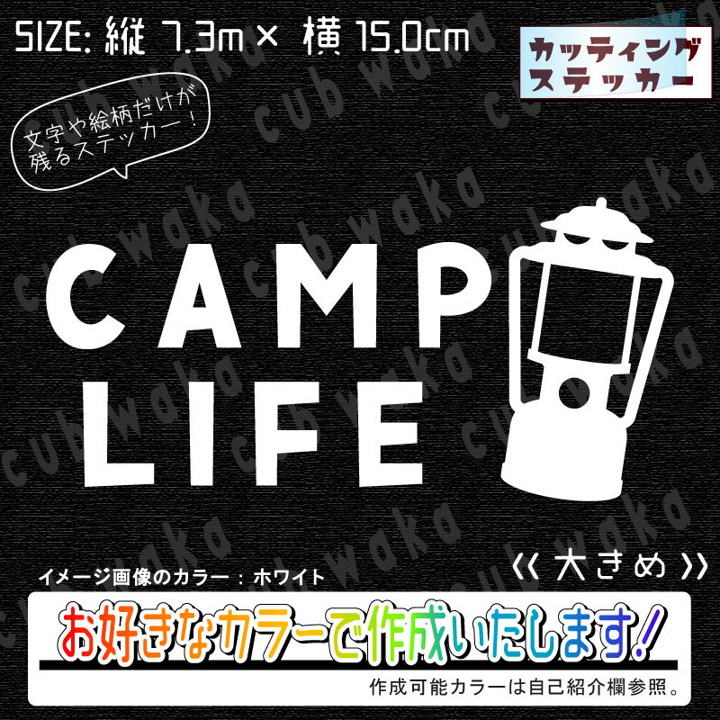 - CAMPLIFE①-3ステッカー 文字絵柄だけ残るカッティングステッカー・車・カブ・二輪 CAMP・キャンプ・焚き火 リアガラス・ランタン