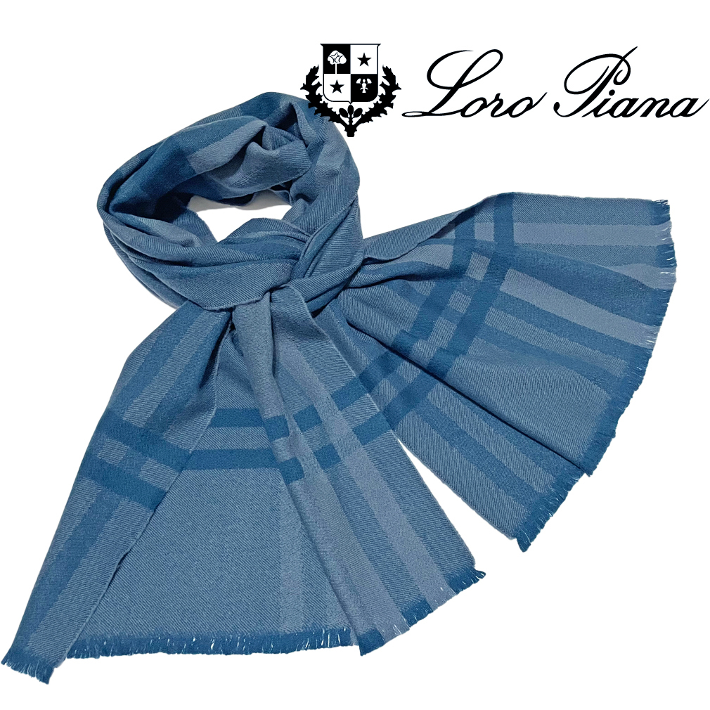 > ロロピアーナLoro Pianaメンズ ウール100% マフラー ブルー★