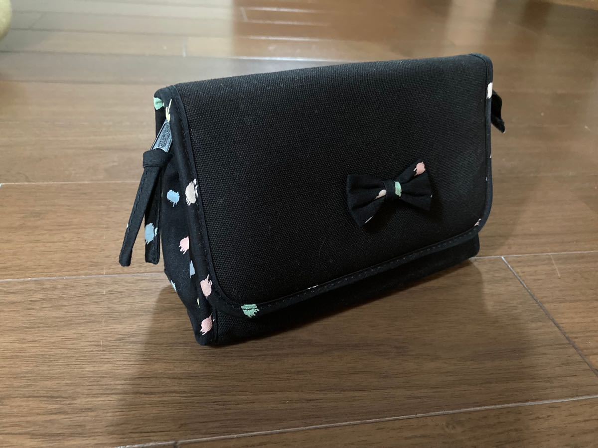 - ★ナラヤ NaRaYa ミラー 付 ポーチ 化粧ポーチ ブラック×パステルドット ★