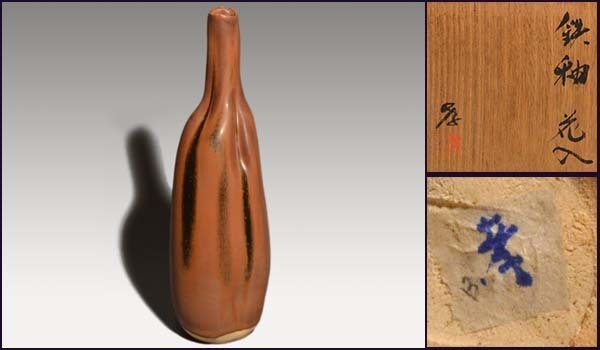 - 加藤孝造(作)鉄釉花入 共箱 高31cm 人間国宝 花瓶 花器 花生 美品 茶道具 a1066