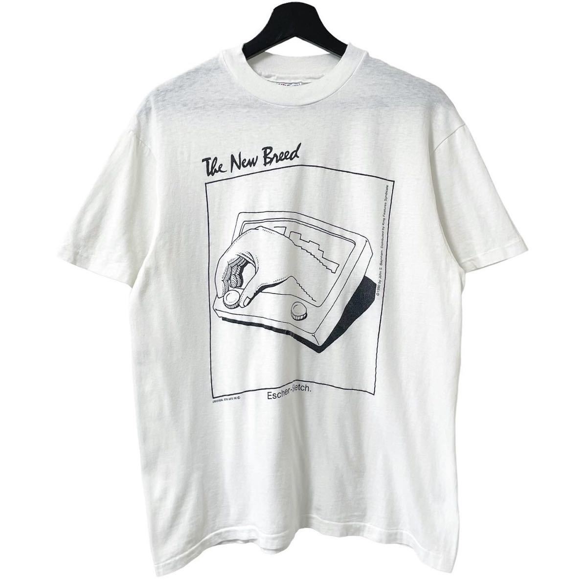 > ■激レア■90s USA製 MC ESCHER DRAWING HANDS パロディ アート Tシャツ L エッシャー 騙し絵 ビンテージ