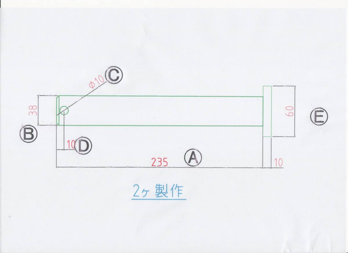 - NO 1400 φ38用 ツバ下235mm バケットピン2本1セット 重機用