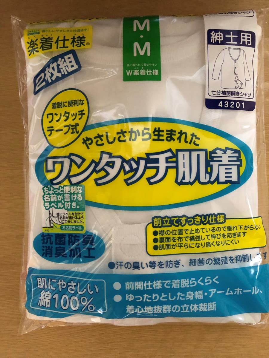 - 新品送料無料【介護肌着】【介護下着】 メンズ7分袖前開きシャツ 2枚セット 綿100% ワンタッチ肌着サイズ (M)