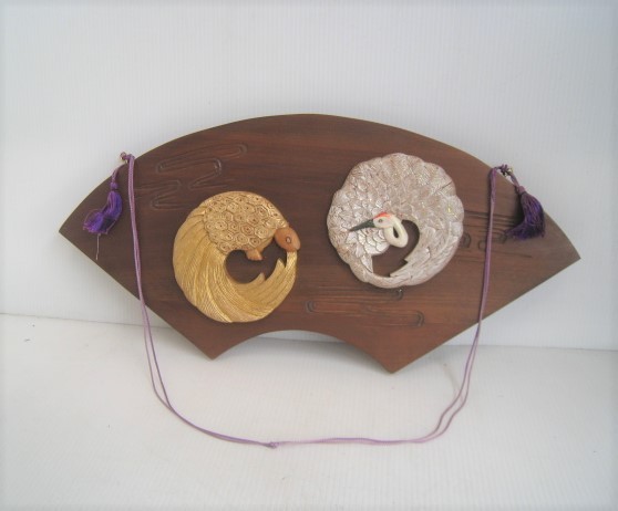 - 長寿 鶴と亀 つる かめ 祝い事 縁起物 木彫りの壁掛け 壁飾り 木製 彫刻 /18N2.2-38