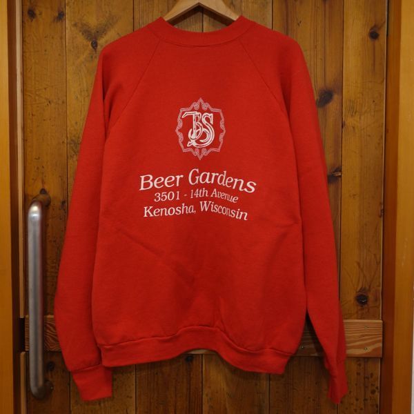 - 80s USA製 FRUIT OF THE LOOM フルーツオブザルーム プリント スウェット ラグラン ビンテージ 両面プリント Shopプリント Beer Gardens