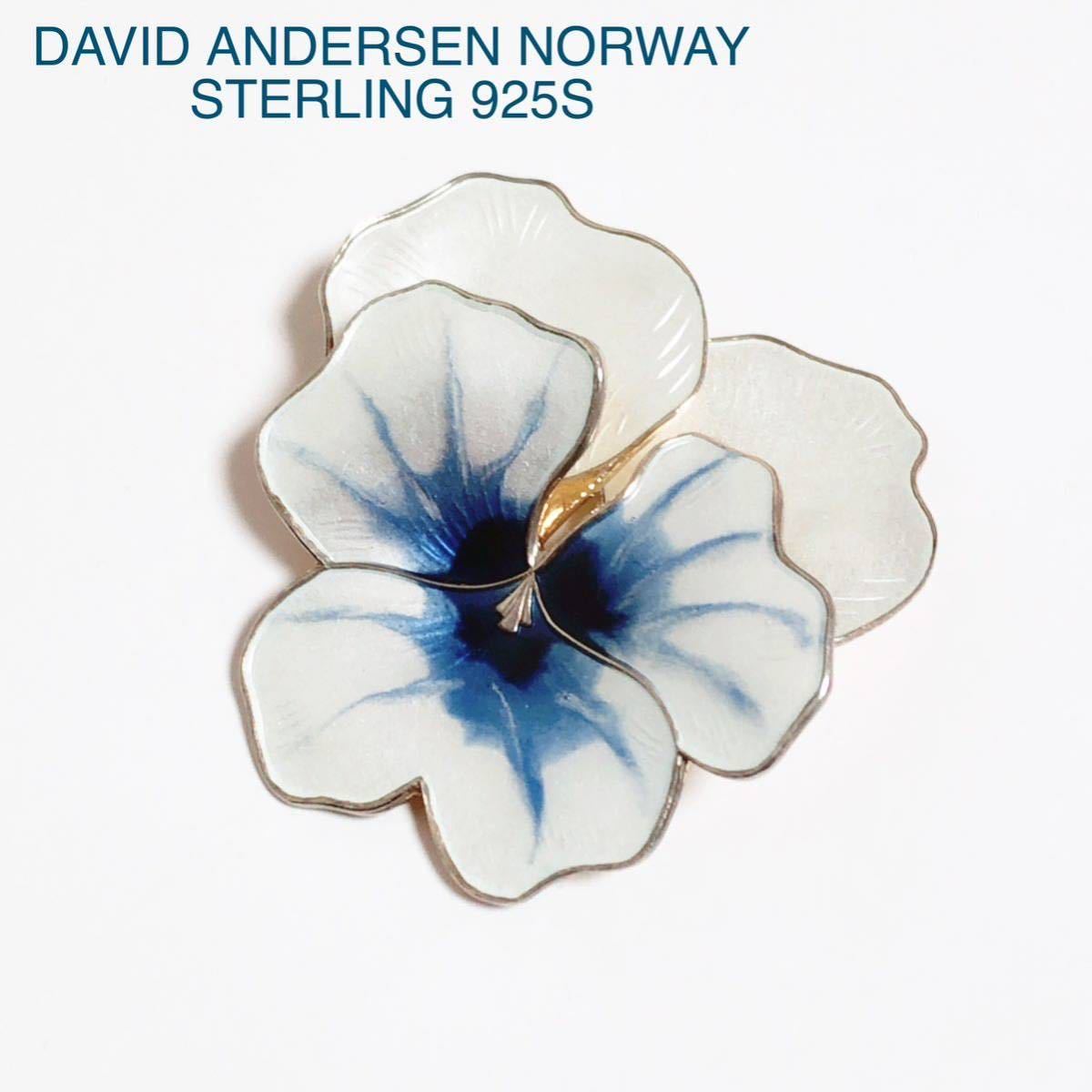 > DAVID ANDERSEN NORWAY STERLING 925S ブローチ パンジー ビオラ 花 ブルー ホワイト シルバー ノルウェー 北欧 ヴィンテージ