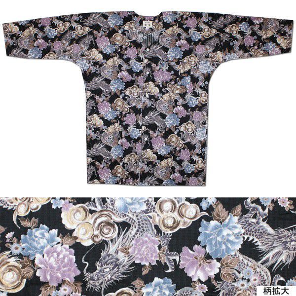 - お祭用品/肉襦袢 鯉口シャツ 龍牡丹 206黒 1号(子ども用)