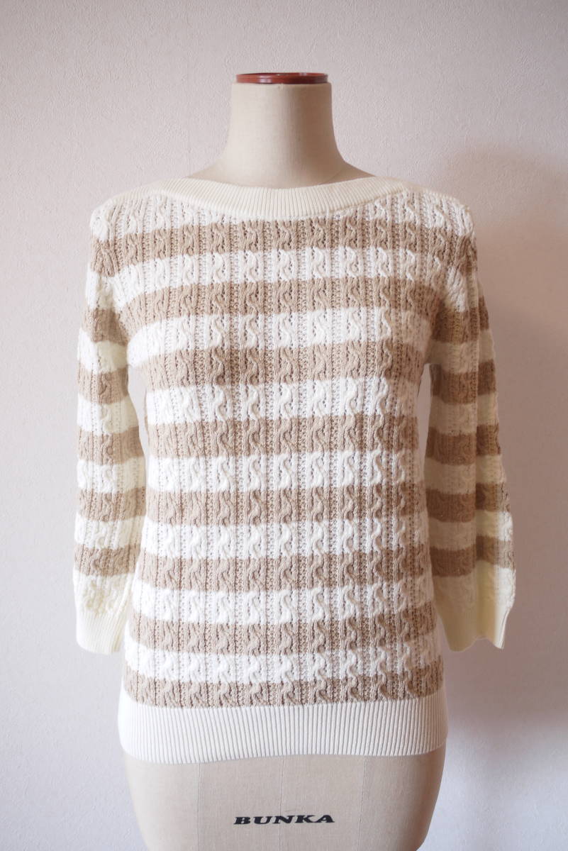 - CHIARA by De'vo キアラ ボーダーコットンニット 白×ベージュ M 美品