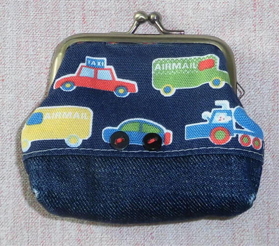 - 中古 がま口財布 クルマ柄 ハンドメイド 男の子