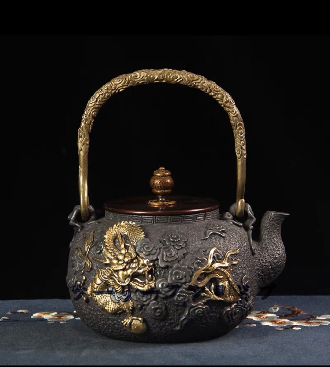- 【ケーリーフショップ】老鉄瓶 未塗装鉄器 提梁壺 対応 鉄やかん 鉄分補給 鉄びん1300ml